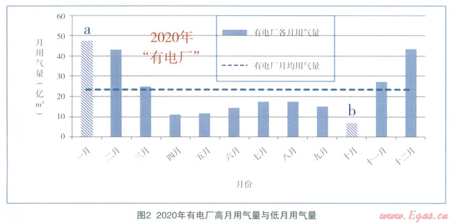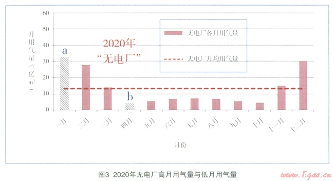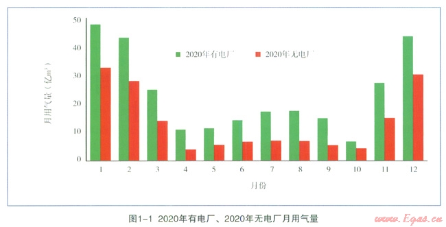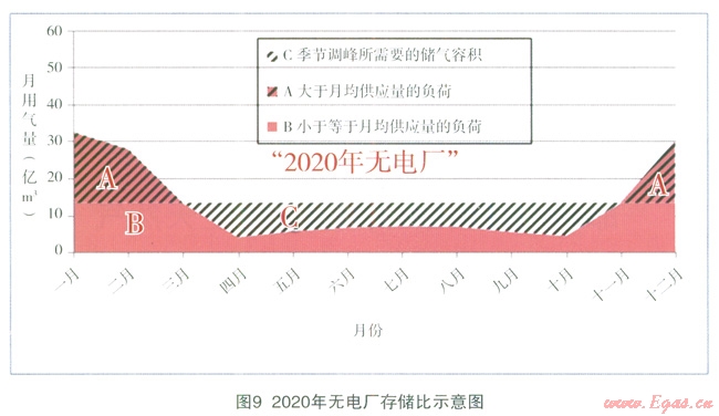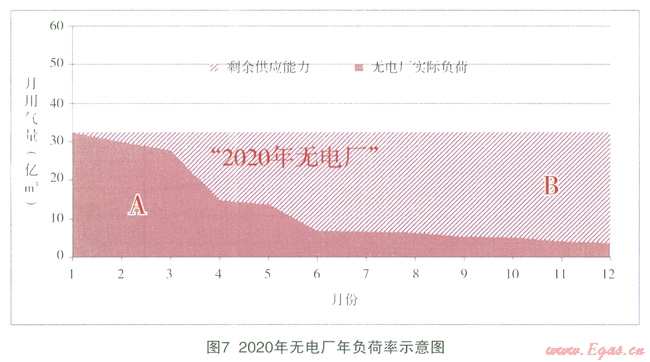 預(yù)計(jì)到2020年,“有電廠”的偏離度為0.34,“無(wú)電廠”為0.61,“有電廠”可以明顯縮小各月間用氣的不均勻性,使一年內(nèi)的負(fù)荷變化趨于平衡。