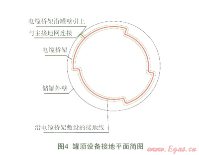 為滿足設(shè)備接地要求,外方利用在儲罐頂部沿接線箱、接線盒集中部位敷設(shè)的電纜橋架巾通長敷設(shè)的截面為70mm2絕緣銅絞線(green insulated stranded copper conductor)作為接地線,該接地線與主接地網(wǎng)連接。罐頂設(shè)備包括橋架、平臺扶手、平臺出入口靜電消除器、放散管接地板、LNG潛液泵等均采用截面為70mm2絕緣銅絞線與橋架內(nèi)接地線連接。罐頂接線箱、插座等均采用截面為35mm2絕緣銅絞線與橋架內(nèi)接地線連接。