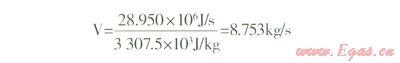 SCV后水的出口壓力0.7MPa,溫度為30℃,h2=126.38kJ/kg。