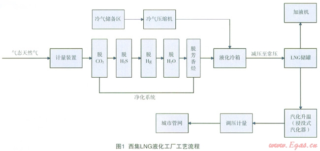 西集LNG天然氣液化工廠的基本工藝過程包括預(yù)處理(凈化)、液化、儲存、外輸、氣化等,采用混合冷劑制冷工藝將天然氣進行液化。
