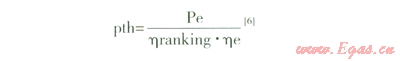 由動力系統(tǒng)的熱力參數(shù)來計算朗肯循環(huán)效率1qranking,假定發(fā)電機效率為he,于是可以得到動力部分所需要的額定熱負荷為Pth。