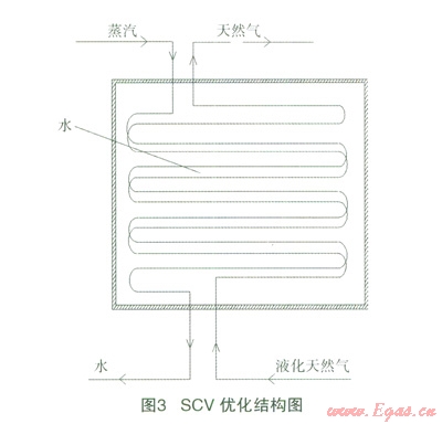 綜上所述,通過分析優(yōu)化SCV內(nèi) LNG氣化所需要的熱源,本文提出利用發(fā)電廠廢熱來為SCV水浴提供熱量,簡化了SCV控制過程,提高了SCV的安全性能,義起到了節(jié)能減排的作用,可同時為電廠和LNG廠站提供可觀的經(jīng)濟效益。在建設(shè)LNG廠站的同時,可以考慮在LNG廠站周邊同時建起相應(yīng)燃氣電廠,利用電廠廢熱氣化LNG,同時LNG還能為蒸汽冷卻提供所需冷能,從而使電廠'和LNG液化工廠之間互補,正常生產(chǎn)中達到最高的經(jīng)濟效益。