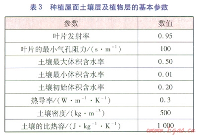 屋面的生態(tài)環(huán)境與地面明顯不同,受屋面自然條件的限制,太陽輻射、溫度、濕度、風(fēng)力等隨著層高的增加而呈現(xiàn)不同的變化,因此屋面的參數(shù)優(yōu)化選取至關(guān)重要。種植屋面通過遮陽作用、熱阻、蒸騰蒸發(fā)作用來實(shí)現(xiàn)節(jié)能的效果。葉面積指數(shù)(簡稱LAI,是指單位土地面積上植物葉片總面積與土地面積之比,是一個(gè)無因次量)和植物高度影響植物的遮陽作用,屋面構(gòu)造和土壤參數(shù)影響種植屋面的熱阻,土壤含水率和植物種類及特征影響蒸騰蒸發(fā)作用。