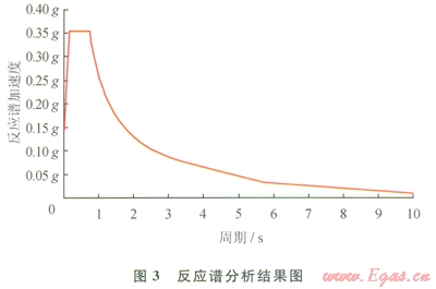 由于強(qiáng)地面運(yùn)動(dòng)產(chǎn)生的影響范圍較大,需重點(diǎn)研究管道在動(dòng)態(tài)載荷作用下的應(yīng)力及位移分布情況。動(dòng)態(tài)地震分析通常分為2種方法:時(shí)程分析法與頻譜分析法。由于管道屬于線彈性系統(tǒng),具有固有頻率,而地震管道的應(yīng)力分析只需得出整個(gè)動(dòng)態(tài)過(guò)程中的最大位移與應(yīng)力,故選用頻譜分析法較為合適。頻譜分析法精度較時(shí)程分析法略低,但計(jì)算較為簡(jiǎn)便[13]。