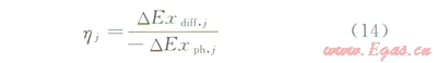 在第j層塔板能量轉(zhuǎn)化過程中,一部分物理能轉(zhuǎn)換為擴散能,其余部分物理能為推動傳質(zhì)過程而被損耗掉。由第j層塔板能衡算式可得: