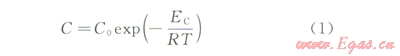 式中C為氣體的滲透系數,(cm3·cm)/(cm2·s·Pa);C0為前端因子;Ec表示滲透活化能;R為摩爾氣體常數,8.31×10-3kJ/(mol·K)。