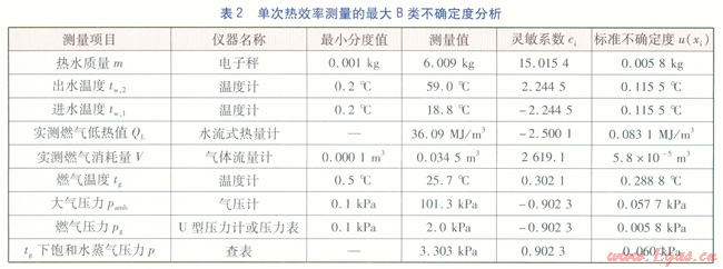 以下選用各次測量中B類不確定度最大的一次實(shí)驗(yàn)數(shù)據(jù)進(jìn)行分析,單次熱效率測量的最大B類不確定度分析見表2。