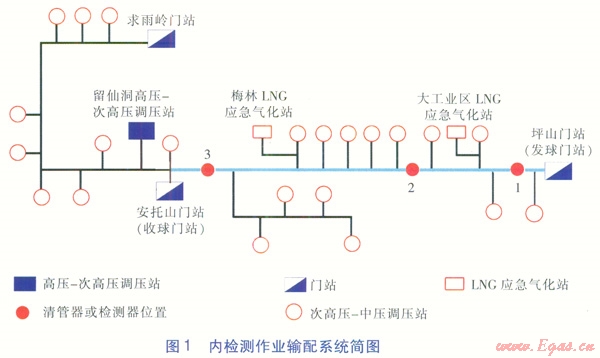調(diào)度中心收集、匯總現(xiàn)場(chǎng)信息,計(jì)算分析清管器或檢測(cè)器實(shí)時(shí)速度,調(diào)整供氣門(mén)站、LNG應(yīng)急氣化站的流量,有效控制球速,滿(mǎn)足內(nèi)檢測(cè)作業(yè)的工藝要求。預(yù)測(cè)清管器或檢測(cè)器通過(guò)各分輸支線(xiàn)及收球門(mén)站的時(shí)間,提前通知廠站現(xiàn)場(chǎng)指揮組做好相應(yīng)操作準(zhǔn)備。通過(guò)調(diào)整清管器或檢測(cè)器的發(fā)球時(shí)間和速度,避免在供氣高峰時(shí)段關(guān)停重要的調(diào)壓站而影響下游供氣。在清管器或檢測(cè)器卡堵的應(yīng)急情況下,進(jìn)行管網(wǎng)運(yùn)行工況調(diào)整及供氣保障的氣量調(diào)度。