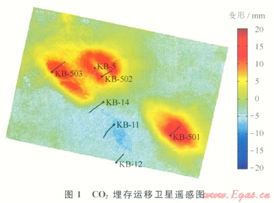 CO2捕集與埋存技術(shù)(Carbon Dioxide Capture and Storage,簡(jiǎn)稱CCS)是實(shí)現(xiàn)CO2減排的首選技術(shù)之一[1],但成本高昂[1-2]。真正意義上獲得全球公認(rèn)的3例大型的工業(yè)CCS項(xiàng)目是:①將CO2埋存在油氣層下部鹽水層的Sleipner-Snjhvit項(xiàng)目;②與CO2-EOR相結(jié)合的Weybrn項(xiàng)目;③在含CO2的低豐度天然氣層中埋存CO2的In Salah項(xiàng)目[2-3]。它們均屬于CO2地質(zhì)埋存同時(shí)結(jié)合石油天然氣開(kāi)發(fā)的項(xiàng)目,其目的是通過(guò)規(guī)模化綜合利用來(lái)降低CO2地質(zhì)埋存的成本。其中In Salah項(xiàng)目在2009年成為CSLF(碳收集領(lǐng)導(dǎo)入論壇)贊助的全球30個(gè)CCS項(xiàng)目之一,是CSLF認(rèn)證的全球3個(gè)CO2埋存檢測(cè)示范點(diǎn)之一。In Salah氣田儲(chǔ)量2149×108m3,產(chǎn)干氣和少量輕質(zhì)油,部分氣藏產(chǎn)CO2,CO2含量5%~l0%。CO2埋存層位是Krechba氣層,為石炭系低滲透砂巖邊水、干氣藏,且富含CO2。氣層厚度20m,孔隙度10%~18%,平均滲透率10mD,CO2埋藏深度為地下1850~1950m。為了在采氣的同時(shí)實(shí)施CO2埋存,項(xiàng)目總投資27億美元。2004年—2011年,氣田進(jìn)行了大規(guī)模天然氣開(kāi)采和CO2地質(zhì)埋存,回注CO2速度約100×104t/a。圖1給出2009年In Salah氣田Krechba氣層CO2埋存的運(yùn)移衛(wèi)星遙感圖顯示,經(jīng)過(guò)5年大劑量的CO2注入后,Krechba氣層的CO2擴(kuò)散仍比較均勻,在生產(chǎn)井未見(jiàn)CO2突破。結(jié)合已經(jīng)公開(kāi)的成果可知,該項(xiàng)目到目前埋存是成功的[2-7]。