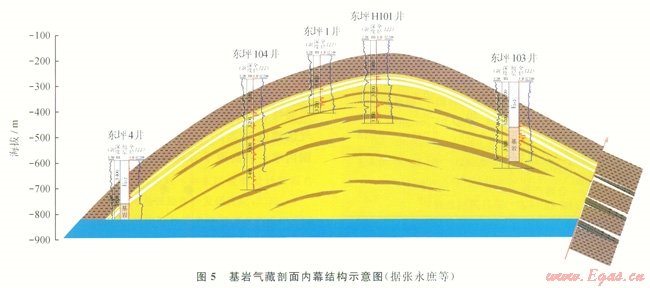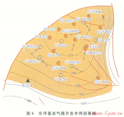 綜上所述,東坪基巖氣藏埋藏深、巖性為致密的花崗巖或花崗片麻巖,儲集空間以基質溶蝕孔和裂縫為主,儲集體內非均質性強、平面和縱向物性差異大,氣藏含氣井段長、分層性差,地層溫度高、壓力大,對氣水分布關系等地質認識還不夠清楚和明確。通過對基巖儲層有利區(qū)帶進行預測研究和氣藏工程研究,認識到氣田開發(fā)應該遵循“分批實施、滾動上產(chǎn)”的原則,堅持直井和水平井相結合、井點與井組相結合、高產(chǎn)區(qū)與低滲透區(qū)措施增產(chǎn)相結合等做法,不斷總結經(jīng)驗、完善開發(fā)技術。目前,青海油田在該區(qū)已經(jīng)獲得一定規(guī)模的天然氣產(chǎn)量。但是,針對基巖氣藏內幕的復雜性,仍然需要將三維地震資料、測井資料和生產(chǎn)測試資料相結合,加強對裂縫系統(tǒng)及其含氣性、氣水關系和層段間的連通性、儲層參數(shù)等開展進一步評價研究,力爭在東坪氣區(qū)建成15×108~20×108m3的年產(chǎn)規(guī)模,為建成國內唯一的高原千萬噸級油氣田作出新貢獻。