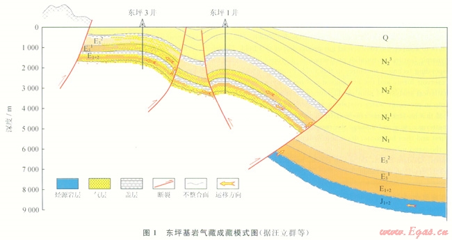 區(qū)內發(fā)育基巖風化殼、中生代與新生代3套地層,受山前構造擠壓影響埋藏深淺不一,東坪1井區(qū)在井深3072m鉆遇基巖,而東坪3井區(qū)則在井深1850m就鉆遇了基巖。