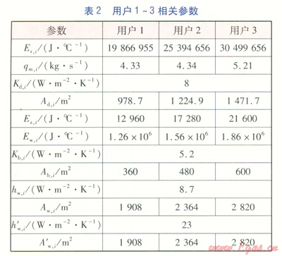 Kd,1、Kd,2、Kd,3——用戶1~3散熱器散熱系數(shù),W/(m2·K)