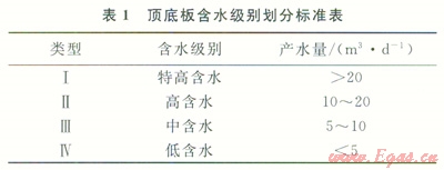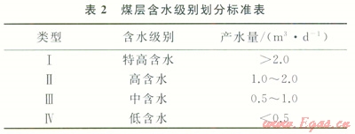 諸如上述煤層頂?shù)装搴墑e劃分方法,對研究區(qū)煤層含水級別進行了劃分(表2)。