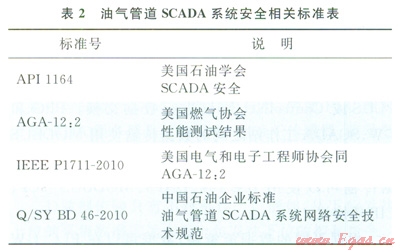 針對上述數(shù)據(jù)傳輸存在的風險進行安全防護設(shè)計時,應當遵循日前已有的油氣管道SCADA系統(tǒng)安全相關(guān)標準。表2中列舉了本文參考文獻的主要標準[10-13]。