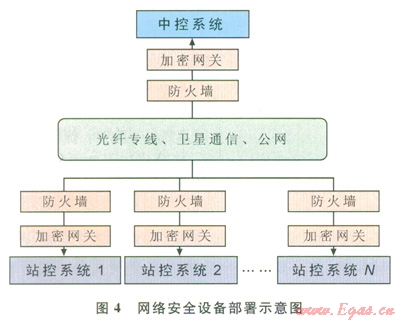 在中控系統(tǒng)和站控系統(tǒng)接入通信系統(tǒng)的邊界上部署硬件防火墻和加密網(wǎng)關(guān),以抵御基于TCP/IP的網(wǎng)絡(luò)攻擊,并對傳輸數(shù)據(jù)進行加密保護。