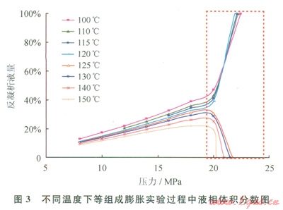 6)測試8個不同溫度點的等組成膨脹實驗,觀察并記錄流體的泡、露點變化。
