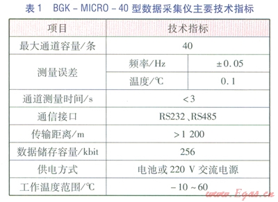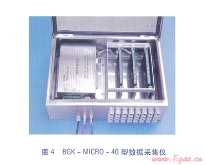 BGK-ICR0-40型數(shù)據(jù)采集儀見(jiàn)圖4,主要技術(shù)指標(biāo)見(jiàn)表l。BGK-MICR0-40型數(shù)據(jù)采集儀主要功能為:遠(yuǎn)程控制和數(shù)據(jù)采集功能?,F(xiàn)場(chǎng)操作功能:預(yù)留有與便攜式計(jì)算機(jī)的接口,可實(shí)現(xiàn)現(xiàn)場(chǎng)標(biāo)定、調(diào)試以及數(shù)據(jù)采集等功能。實(shí)時(shí)時(shí)鐘管理:為定時(shí)測(cè)量、自動(dòng)儲(chǔ)存等功能提供時(shí)間基準(zhǔn)。斷電保護(hù):所有參數(shù)和監(jiān)測(cè)數(shù)據(jù)儲(chǔ)存在專用非易失性儲(chǔ)存器中,可確保斷電后參數(shù)和數(shù)據(jù)的安全??估讚簦涸陔娫聪到y(tǒng)、通信線路接口、模擬輸入引線等處設(shè)置了有效的抗雷擊電路??闺姶鸥蓴_:模塊采用金屬盒封裝,在電路設(shè)計(jì)上對(duì)通信接口采用光電隔離技術(shù),具備很強(qiáng)的抗電磁干擾能力。智能化測(cè)量功能:可根據(jù)要求實(shí)現(xiàn)定點(diǎn)測(cè)量、定時(shí)測(cè)量、即時(shí)測(cè)量等多種測(cè)量方式。多種供電方式:可實(shí)現(xiàn)電池及220V交流電源供電,內(nèi)置可充電免維護(hù)電池,保證在外部供電中斷情況下繼續(xù)正常運(yùn)行168h以上。
