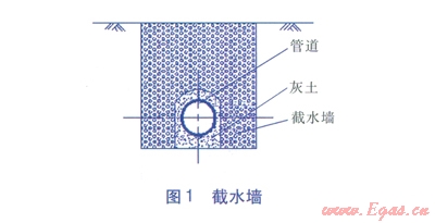 坡度為7°~l5°的陡坡:宜在管溝內(nèi)每隔l0m采用灰土回填,防止回填土流失?;彝裂毓軠陷S向回填長度為1m灰土由石灰和土組成,石灰與土的體積比為3:7。