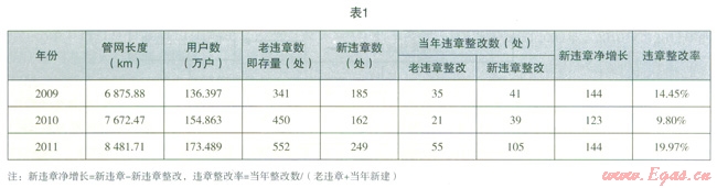 現(xiàn)取近3年6家燃?xì)夤竟芫W(wǎng)及違章數(shù)據(jù)統(tǒng)計(jì),見表1。