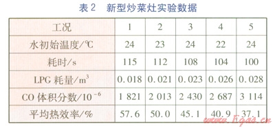 摘 要:介紹新型中餐液化石油氣炒菜灶的結(jié)構(gòu)。采用實(shí)驗(yàn)方法,比較新型與傳統(tǒng)中餐夜化石油氣炒菜灶的熱效率、液化石油氣耗量、煙氣中一氧化碳體積分?jǐn)?shù)。