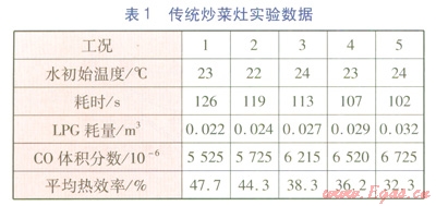 為驗(yàn)證新型炒菜灶的性能,將其與傳統(tǒng)炒菜灶進(jìn)行熱態(tài)對比實(shí)驗(yàn)。實(shí)驗(yàn)主要對比炒菜灶的熱效率、節(jié)能效果、排放特性。