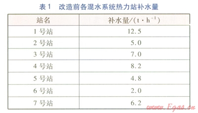 以青島市敦化路區(qū)域供熱蒸汽改高溫水工程為例,本區(qū)域內(nèi)原有的13座用戶熱力站以華電發(fā)電廠的蒸汽為熱源,改造后新建l座高溫水首站,13座用戶熱力站以首站高溫水為熱源,其中7座用戶熱力站采用混水系統(tǒng)供熱(如圖1所示),6座用戶熱力站采用間接換熱系統(tǒng)供熱。該工程改造完成后,供暖面積將達(dá)到192.6×104m2。在供熱規(guī)模不變的情況下,與原供熱方式相比,一級(jí)熱力管網(wǎng)(高溫水管網(wǎng)比蒸汽管網(wǎng)熱損失率大幅度降低)改造后節(jié)約標(biāo)準(zhǔn)煤量為2125.9t/a,凝結(jié)水回收節(jié)約標(biāo)準(zhǔn)煤量為1497.4t/a,新建高溫水首站增加電力能耗量折合節(jié)約標(biāo)準(zhǔn)煤量為-44.7t/a,綜合計(jì)算這3項(xiàng)得出每年降低煤耗折合標(biāo)準(zhǔn)煤量為3578.6t/a,可減少二氧化硫排放量為74t/a,減少煙塵排放量為18t/a,減少氮氧化物排放量為37t/a,減少二氧化碳排放量為9198t/a。該項(xiàng)目的實(shí)施具有良好的節(jié)能效益和環(huán)境效益,符合國家環(huán)保政策,通過該項(xiàng)目的實(shí)施可全面提升企業(yè)的能源綜合利用率,實(shí)現(xiàn)環(huán)境效益、社會(huì)效益和企業(yè)經(jīng)濟(jì)效益的協(xié)調(diào)統(tǒng)一。