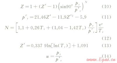 天然氣的平均對(duì)比壓力(p¢r)、平均對(duì)比溫度(T¢r)可由以下公式計(jì)算。