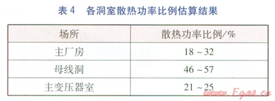 大型地下水電站廠房一般以主廠房、主變壓器室曲大洞室為中心,中間通過母線洞連接,形成龐大、復(fù)雜的地下洞室群。其中,主廠房分為發(fā)電機層、母線層、水輪機層、蝸殼層、廊道層等功能層。散熱設(shè)備的各分布場所分別見表2、3.以三峽地區(qū)某地下水電站各場所散熱功率比例進行估算。