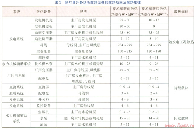 20世紀(jì)90年代以來,隨著設(shè)備制造工藝的提高,水電站大部分設(shè)備耗損降低,散熱量也隨之減少。主要體現(xiàn)在以下方面。