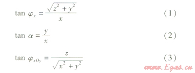 設管臂上點P的坐標為(x,y,z),則有: