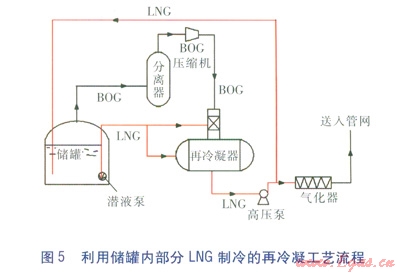 利用儲(chǔ)罐內(nèi)部分LNG制冷的再冷凝工藝流程見(jiàn)圖5。