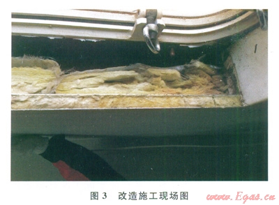 海上固定平臺長期受潮濕、日照、腐蝕等因素影響[13],使平臺生活樓房間墻壁原有隔聲效果降低。為更好的阻礙空氣噪聲及振動噪聲的傳播,針對房間的墻壁提出改造處理。生活樓房間的吸隔聲內(nèi)墻壁如圖1所示,墻壁的隔聲效果不佳。對于該類房間的墻壁,選用符合中國船級社規(guī)定的吸隔聲材料,如圖2所示。對于噪聲超標代表性房間進行現(xiàn)場施工改造,改造現(xiàn)場圖如圖3所示。