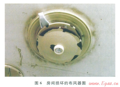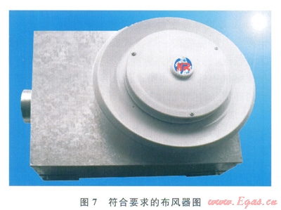 布風器是海上固定平臺生活樓房間通風的基本設施,但由于布風器的長期使用,導致布風器損壞,使平臺房間通風時,產(chǎn)生氣流噪聲,造成房間噪聲過高,如圖6所示。針對此類房間的布風器,給出具體形式的布風器產(chǎn)品,對其進行更換處理,從而降低房間氣流噪聲值,產(chǎn)品形式如圖7所示。