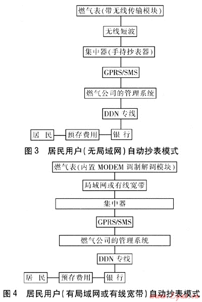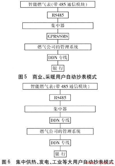 由購買氣量改為預(yù)存費(fèi)用,預(yù)存費(fèi)用的數(shù)值保存在燃?xì)夤镜臄?shù)據(jù)管理中心,以便根據(jù)燃?xì)鈨r(jià)格實(shí)時(shí)調(diào)整,避免燃?xì)鈨r(jià)格上漲前用戶囤氣給燃?xì)夤編頁p失。此方式綜合了國外的先進(jìn)技術(shù)和我國的國情,將成為我國城鎮(zhèn)燃?xì)饩用裼脩?、商業(yè)用戶今后計(jì)量收費(fèi)的發(fā)展趨勢。對于其他不適合預(yù)付費(fèi)方式的城鎮(zhèn)燃?xì)庥脩?,今后發(fā)展的趨勢是自動(dòng)抄表。