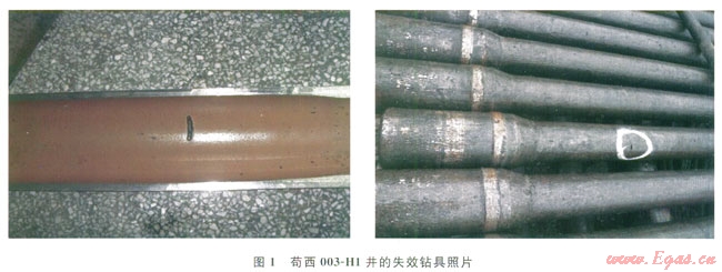 筆者從中國石油川慶鉆探工程公司(以下簡稱川慶鉆探)的2013年度鉆具疲勞失效分析會議注意到:茍西003-H1井[1]一共發(fā)生14次在鉆桿過渡帶消失區(qū)的刺穿失效,其中9次為連續(xù)發(fā)生的,更換不同廠家鉆具無效。而鄰近2口井采用同廠家的鉆具則沒有發(fā)生任何失效,不同的是該井造斜點僅為300m,但井斜不大且發(fā)生失效段狗腿度也不大。這種明顯的周期性鉆具累積疲勞破壞近年時有發(fā)生,主要與井身軌跡復雜有關[2],應重點考慮淺井段造斜作業(yè)的影響。以此作為一種失效類型進行統(tǒng)計,力求分析得出結論,既可以為施工作業(yè)進一步預防和避免此類失效提供思路,也可以為設計部門借鑒。