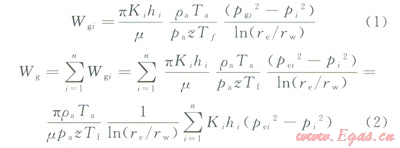 對于全部射開的巨厚氣藏,流體的滲流特征與普通氣藏的滲流并沒有特別大的差別,所以滲流模型可以用常規(guī)的氣井滲流模型。即