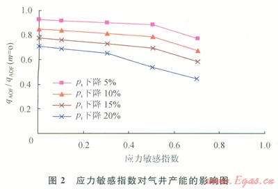 3.1 應(yīng)力敏感指數(shù)對氣井無阻流量的影晌