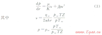 在平面徑向流情況下,氣體高速非達西滲流的速度方程[11-13]為: