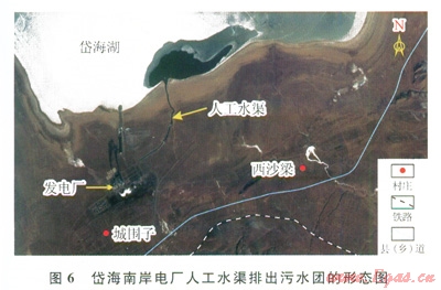 遠(yuǎn)砂壩位于河口壩外側(cè),與河口壩相接,是河口壩向湖的延伸,只是由于水體變深,水動(dòng)力變?nèi)?,沉積物以粉砂和泥質(zhì)粉砂為主,顏色也偏暗。粉砂和泥主要是呈懸浮狀態(tài)由靠慣性向前流動(dòng)的河水搬運(yùn)、沉積的。在沉積過(guò)程中,沿岸流的作用可使混濁的河水向兩側(cè)擴(kuò)散。因此遠(yuǎn)砂壩的沉積范圍比河口壩的要大。在岱海南岸有一個(gè)發(fā)電廠,排出的污水沿人工渠流入湖中。人工渠寬約10m,水深約1m,流速較急,約0.7m/s,與辮狀河流速相近。污水在湖中的擴(kuò)散形式可以反映河水在湖泊中的擴(kuò)散形式(圖6)。
