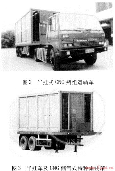 CNG運(yùn)輸車有3種型式,即CNG高壓氣體長管氣瓶車、半掛式CNG瓶組運(yùn)輸車和箱式CNG瓶組運(yùn)輸車。
