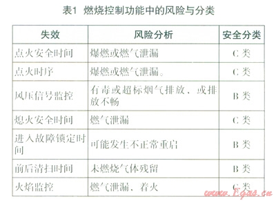 火焰監(jiān)控通常與燃?xì)馇袛喙δ荜P(guān)聯(lián),所以燃燒控制功能屬于C類安全。如果燃燒控制不包括火焰監(jiān)控功能,僅是一些時序與邏輯的控制,其功能安全可根據(jù)失效后果歸為B類,具體可參見表1。