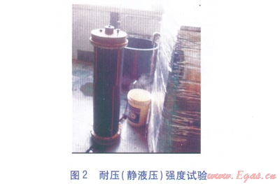 依據(jù)《規(guī)程》5.1.9條規(guī)定,每次試驗(yàn)需選擇2個(gè)現(xiàn)場(chǎng)檢查出來(lái)有疑問(wèn)的接頭,一個(gè)接頭做耐壓(靜液壓)強(qiáng)度試驗(yàn)(見(jiàn)圖2),另一個(gè)接頭選取翻邊不合格段所對(duì)應(yīng)的管段作取樣件(圖3中的黑色部分),做拉伸性能試驗(yàn)(見(jiàn)圖3)。試驗(yàn)的方法及參數(shù)遵照表1的相關(guān)規(guī)定。其中耐壓(靜液壓)強(qiáng)度試驗(yàn)時(shí),因管道材質(zhì)為PE100,所以環(huán)應(yīng)力s取5.4MPa。管內(nèi)試驗(yàn)壓力按下式計(jì)算: