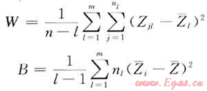 確定段內(nèi)方差W及段間方差B,其中n為有序樣品個(gè)數(shù),l為分段長度。