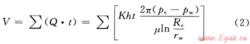 發(fā)現溢流關井后,地層氣體在地層壓力與井底壓力的壓差作用下會向井筒續(xù)流,續(xù)流作用的強弱取決于井底壓差和地層系數的大小。續(xù)流過程中地層氣體侵入體積公式可表示為: