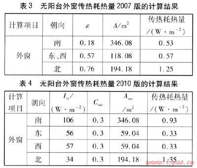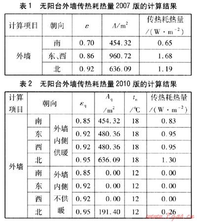 由式(2)與式(7)的比較可知:式(7)中tn取18℃;2010版中太陽輻射修正系數(shù)由較精確的計(jì)算得出;2010版中非供暖封閉陽臺(tái)的傳熱耗熱量不再像2007版那樣將墻與窗(門)分開計(jì)算。