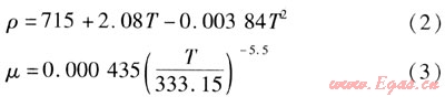 水的密度和黏度隨溫度變化的表達(dá)式為[11]: