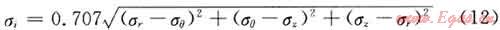 根據(jù)Von-Mises屈服強(qiáng)度準(zhǔn)則,用三軸應(yīng)力來校核管柱安全性,應(yīng)力計(jì)算公式為: