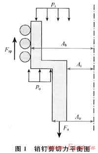 1) 對于第一種工況,封隔器坐封完成后,繼續(xù)增壓使伸縮短接剪斷銷釘,伸縮短接進(jìn)入工作狀態(tài)。銷釘受力情況如圖1所示,剪斷銷釘所需要的載荷(Fsp)為[6]: