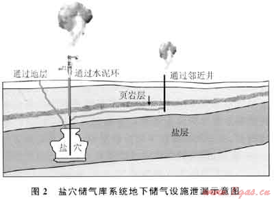鹽穴地下儲氣庫是通過井筒將氣體注入鹽丘或鹽層上的廢棄鹽穴或淋漓建造的鹽穴內(nèi)進行儲存,并可采出來滿足市場需求。儲氣庫應(yīng)具備兩種能力:①儲存天然氣并阻止天然氣釋放到周圍環(huán)境中;②以有效速率為用戶提供儲存天然氣。一旦喪失這兩種或其中一種能力,即定義為失效,失效模式包括泄漏和傳輸能力下降兩種[1]。特別強調(diào)的是,對于地下儲氣設(shè)施應(yīng)考慮兩種失效模式,而對于地面站場設(shè)施和地面集輸管線則只關(guān)注泄漏模式。