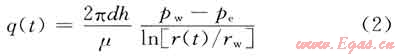 式中q(t)為泄漏率,m3/d;d為水平方向的滲透率,mD;h為滲透厚度,m;pw為井內(nèi)壓力,kPa;pe為氣液界面壓力,kPa;μ為氣體黏度,Pa·s;r(t)為氣體前緣位置,m;rw為井內(nèi)半徑,m。